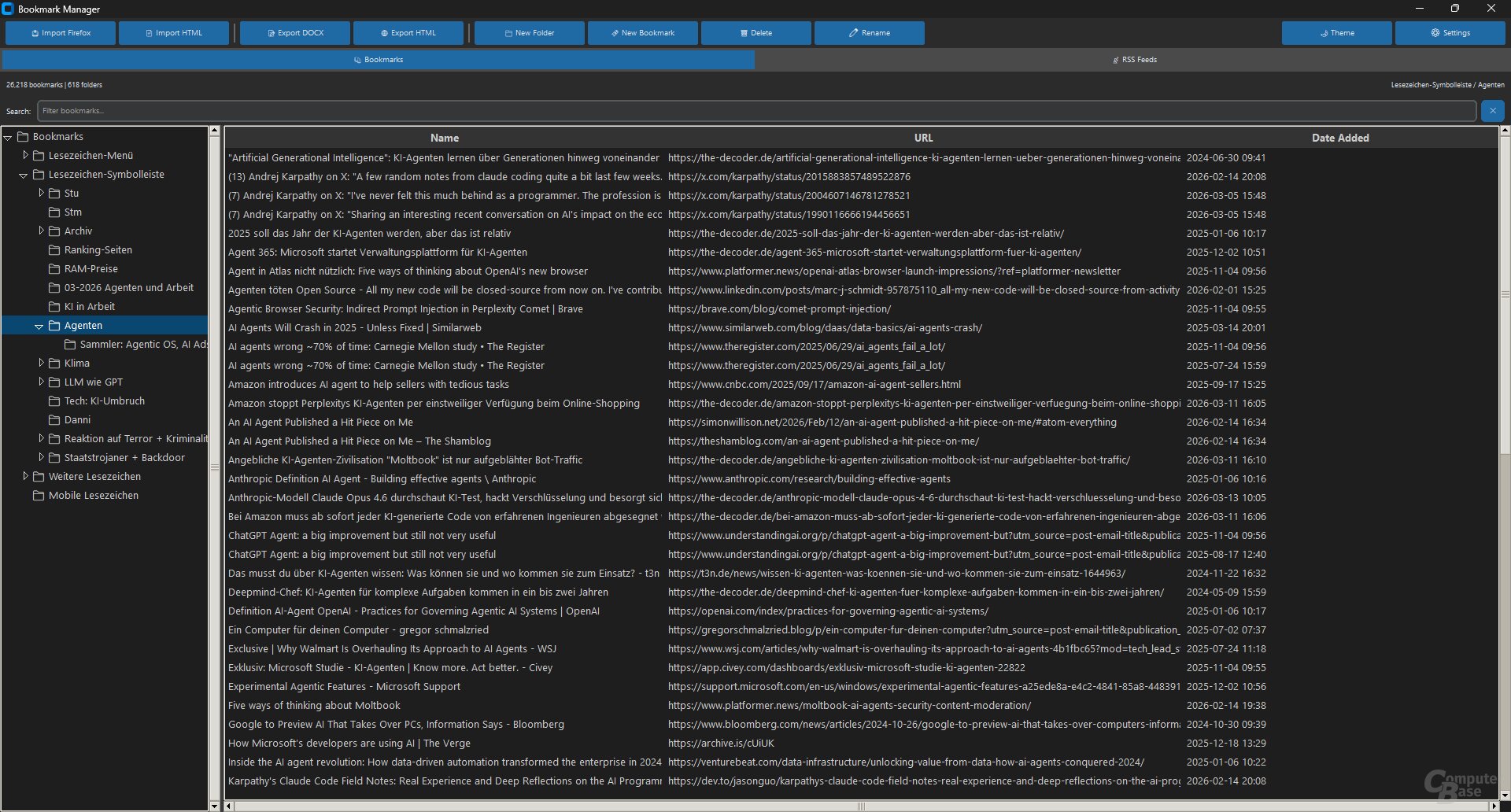 Und die dritte Erkenntnis: Wenn die eigene Lesezeichen-Sammlung so etwas wie ein Recherche-Grundgerüst ist, will man es nicht direkt in einem Agenten-System verwalten, das aus irren Gründen womöglich plötzlich alles löscht oder Einträge manipuliert. Nach Jahren des Halluzinierens fehlt das Vertrauen.