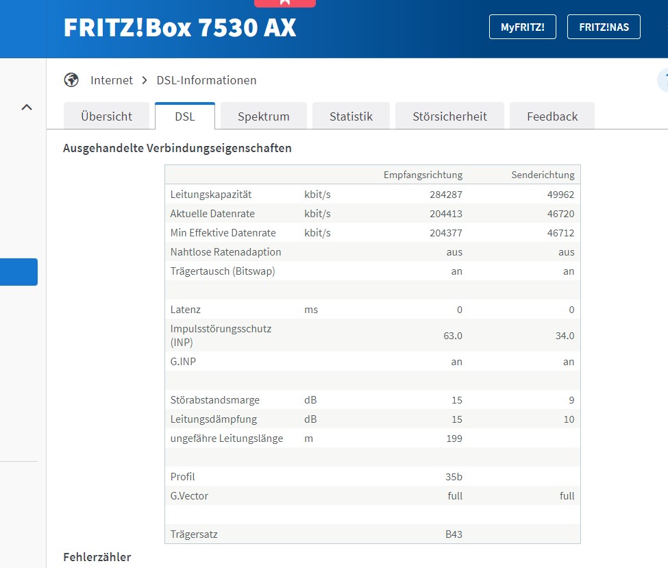 Die hier verwendete Fritzbox 7530 AX zeigt leider keine DSLAM-Datenrate Max. an, lässt sich hier also nicht so einfach erkennen welches Profil geschaltet ist. Denke aber genau wie @DLMttH, dass es das 175er Profil ist.