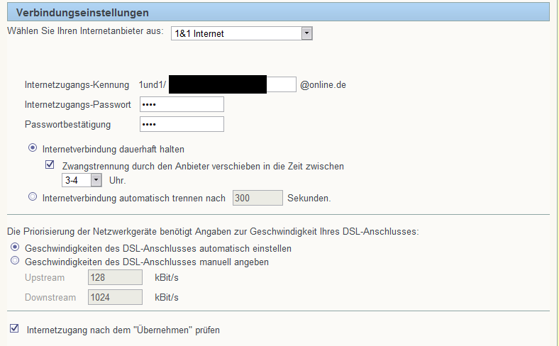 Wir hatten jahrelang DSL2000 bei der Telekom, was auch wunderbar lief. Keine Ausfälle und sonstiges. Nun sind wir zu 1&1 gewechselt (Tarif 1&1 Doppelflat 6000). Leider bekommen wir jetzt gerade mal noch DSL1000-Geschwindigkeit. Angeblich, weil die Leitung nicht mehr hergeben würde, bzw. die Verbindung zu schlecht sein würde, wenn die Geschwindigkeit höher wäre. Theoretisch wären an unserem Anschluss bis zu 5000kBit/s möglich. Vor dem Wechsel hatten eigentlich damit gerechnet, dass wir wieder unsere 2000kBit/s bekommen.