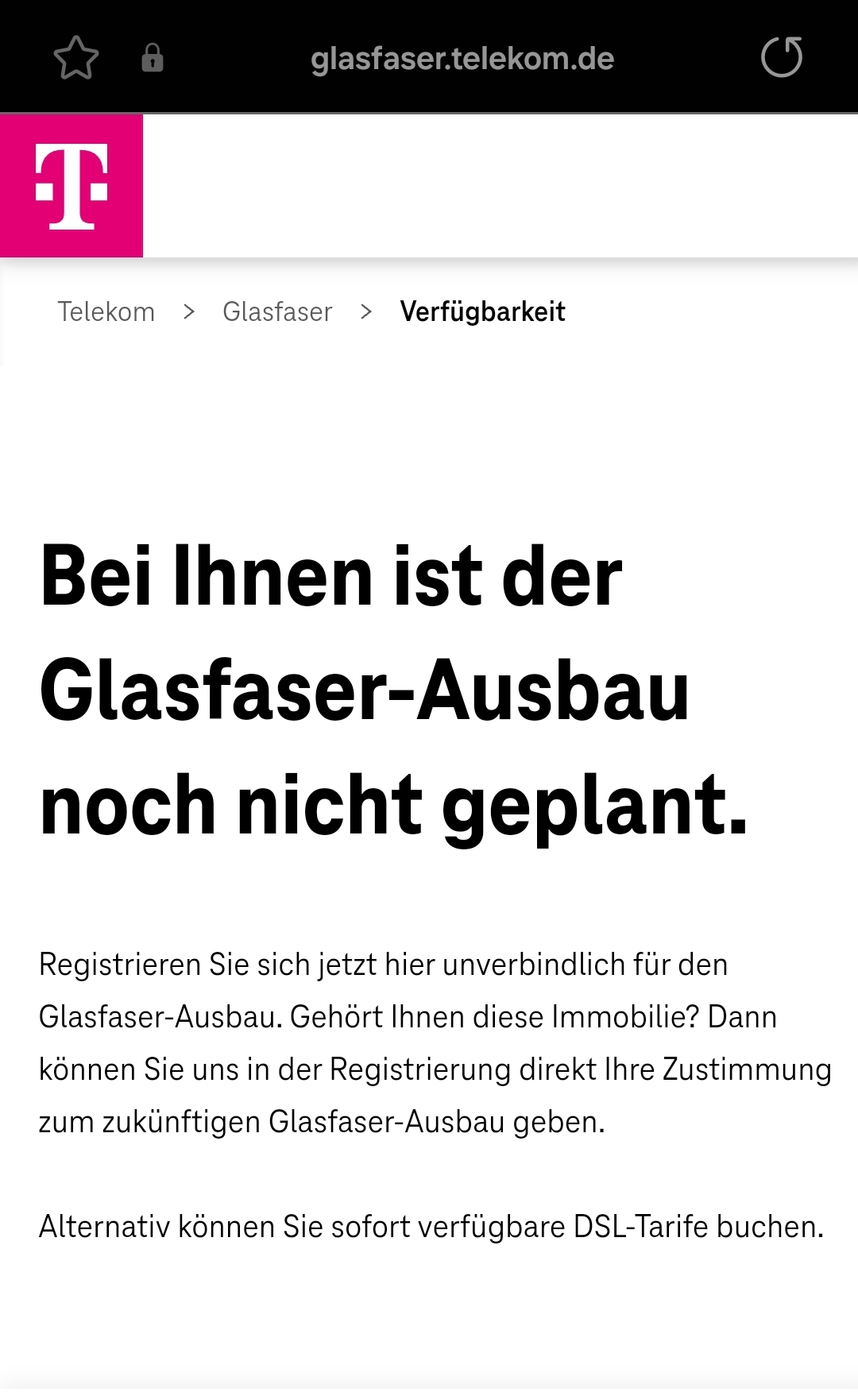 Mhm, lt Telekom ist nichts geplant und andere Anbieter/Vorleister gibt es bei uns eigentlich nicht