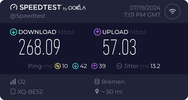 einfach freuen und nutzen weniger die Anwendung Speedtest "spielen"Leider bin ich beim Upload bisschen enttäuscht (auch wenn das vielleicht kleinlich ist)