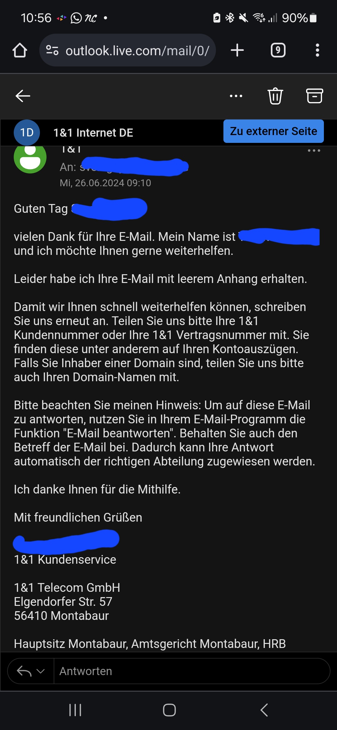 Und zu guter Letzt keine selbstständige Kontaktaufnahme zu 1&1 in dieser Angelegenheit aufnehmen und bei Anrufen, Briefen und E-Mails seitens 1&1 auf den Anwalt verweisen. Die Schriftstücke und Anrufe, sind direkt in der Kanzlei zu melden und entsprechend Schriftstücke abzugeben.