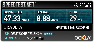 Das funktioniert auch ganz prima wenn ich mit meinem PC über lan direkt verbunden bin. Sobald ich aber über WLan versuch die volle leistung zu bekommen klappt das nicht so gut ich komme auf eine maximal leistung von einer 12.000 leitung.