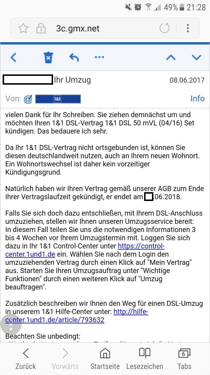 eine gute Freundin zieht bald um. Ich helfe ihr bei Verträge Kündigen. Leider klappt es bei 1&1 ist so ganz rund wie ich das gedacht habe.