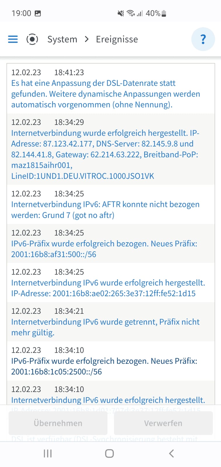 Ich hab nicht so sonderlich viel Ahnung von der Fritzbox. Ich Weis nur wir haben mehrmals die Stunde verbindungsabbrüche und ich Weis nicht warum. Unser Anschluss bei 1&1 besteht seit Freitag , war vorher bei Vodafone und da gab es keine Probleme.