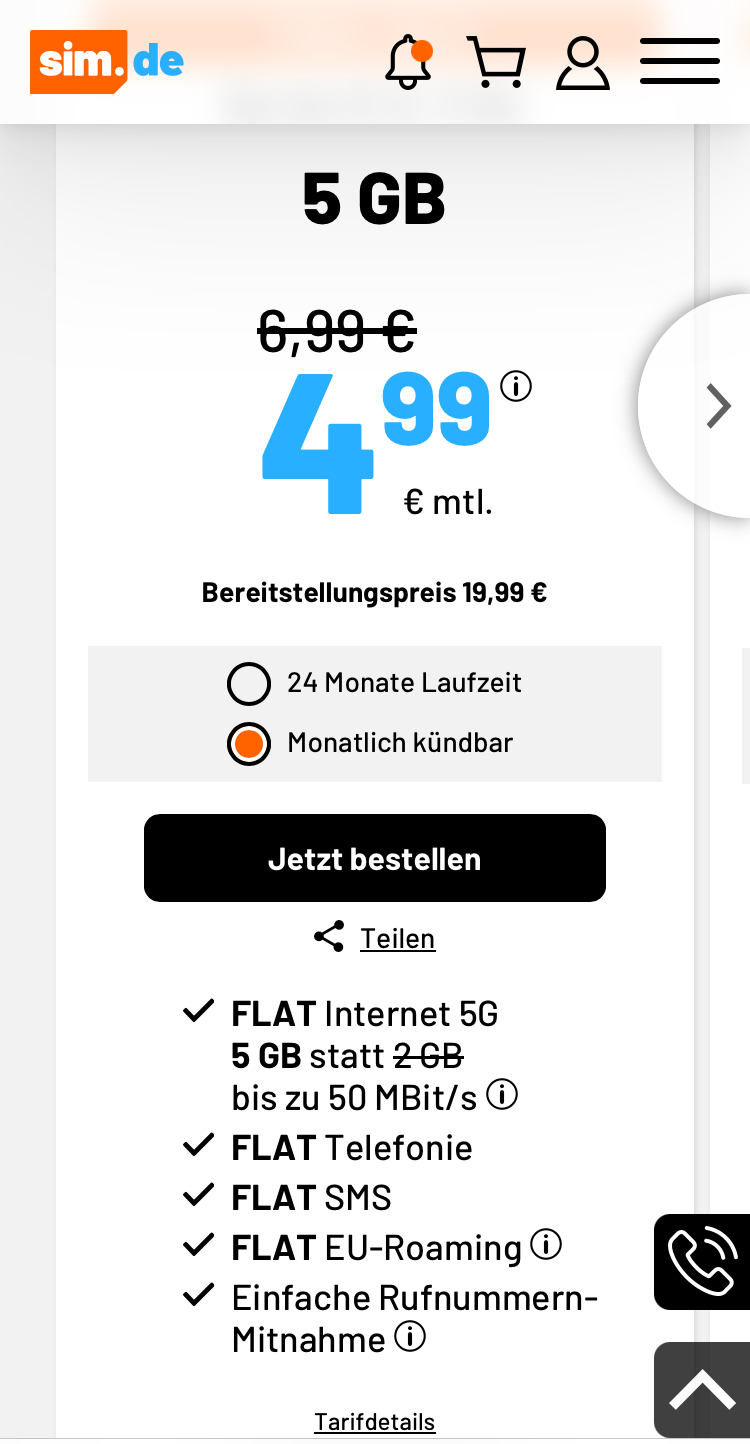 Dann geht's auch erheblich günstiger...joel schrieb:Mit dem Handy mache ich nicht viel, komme selten auch nur in die nähe von 2GB.