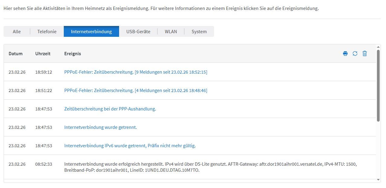 Angehangen noch ein Bild von der Verteildose und Ereignissprotokoll etc der Fritzbox nach einem Abbruch.