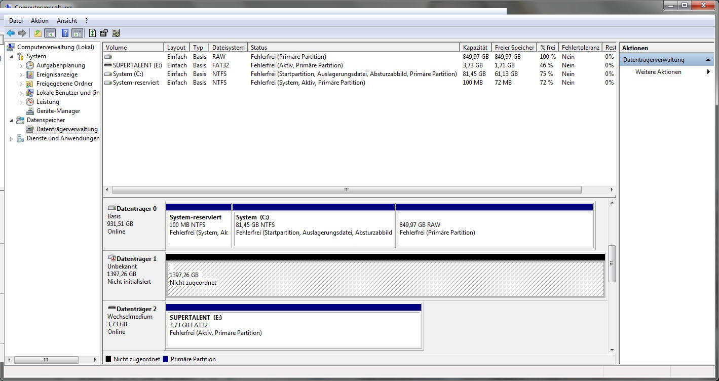 Im Anhang sind Screenshots von der Datenträgerverwaltung. Bin ziemlich überrascht. Hat das etwas damit zu tun, dass ich schon 4 Primäre Partitionen habe?