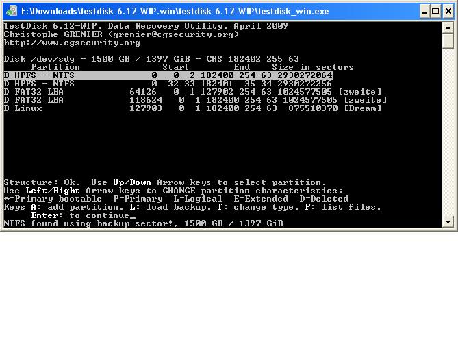 Dies Festplatte ist nicht partitioniert gewesen also nur eine Partition!
