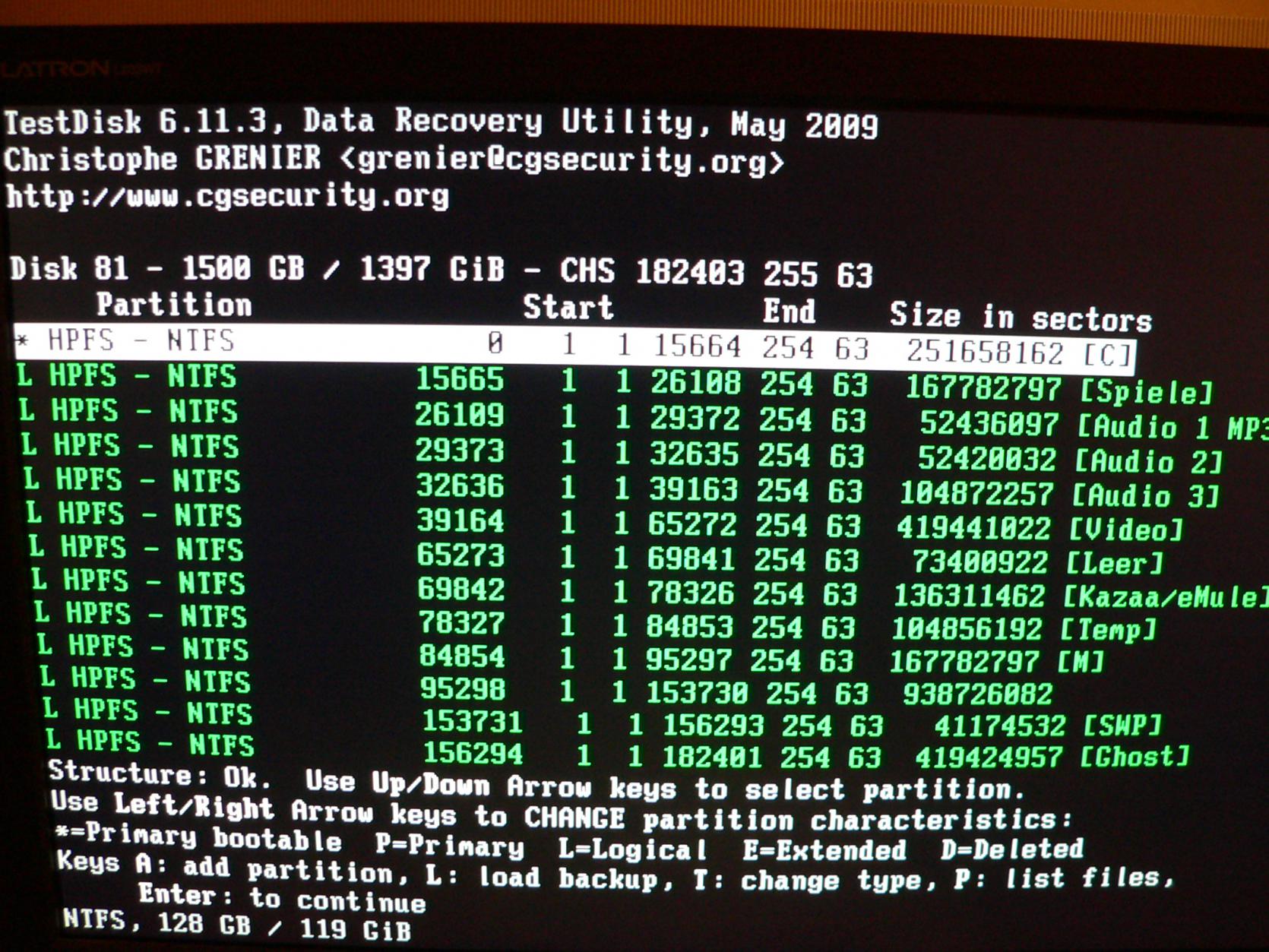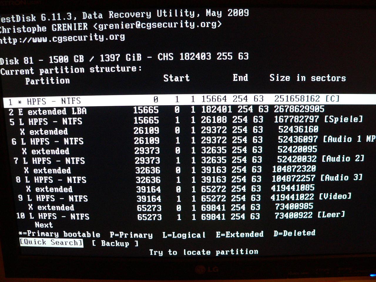 Durch googeln bin ich auf TestDisk gestoßen. Ich habe mir eine CD mit TestDisk 6.11.3 erstellt.