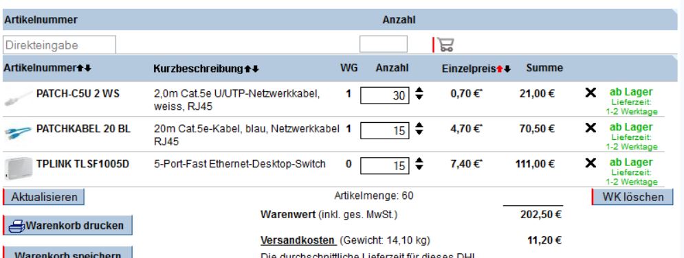 Dann komme ich Gesamt auf 202 € + Versand. Eventuell noch einen 16-Port-Switch als Ausgangsswitch, dann kämen noch 20 € dazu.