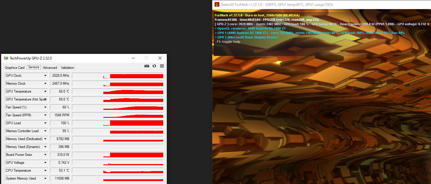 Erwartet hätte ich aber, dass die Spannung der GPU deutlich höher liegt, statt ~700 Millivolt eher 1000 Millivolt. Zumindest habe ich das von den bisherigen Generationen so im Kopf, aber vielleicht habe ich da bei Tests nicht richtig hingeschaut.
