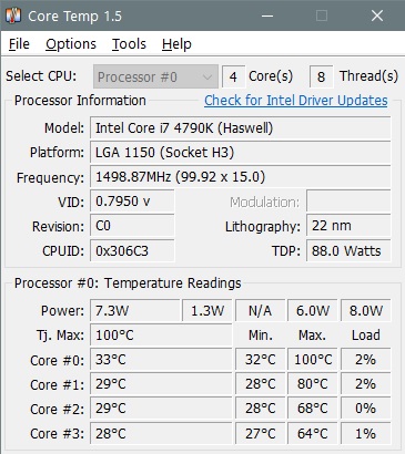 ich habe gerade Prime95 ca. 10 Minuten laufen gelassen, dabei wird der Core #0 mit 100°C knapp 20°C heißer als die anderen 3.