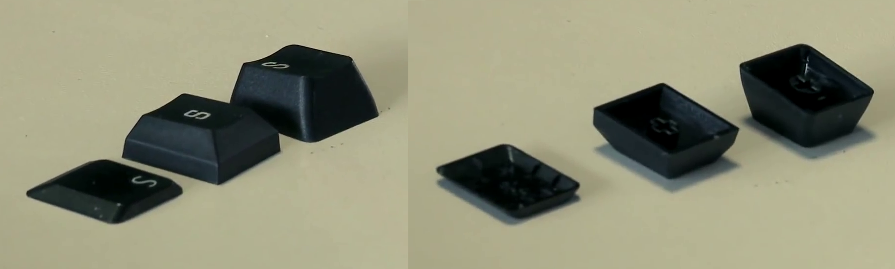 Ob die flacheren Tasten der MX Board besser zum Tippen geeignet sind, kann ich nicht sagen. Ich habe ein paar Mal bei meinem Kumpel mit normal hohen (Mecha)Tasten getippt und finde es eigentlich genauso gut. Jedoch sehen diese Flachere Tasten irgendwie besser für mich aus. Also optisch bevorzuge ich doch die flacheren Tasten. Hier ein Vergleich zwischen den normal hohen Tasten, der flacheren MX Board Tasten und der richtig flachen Tasten: