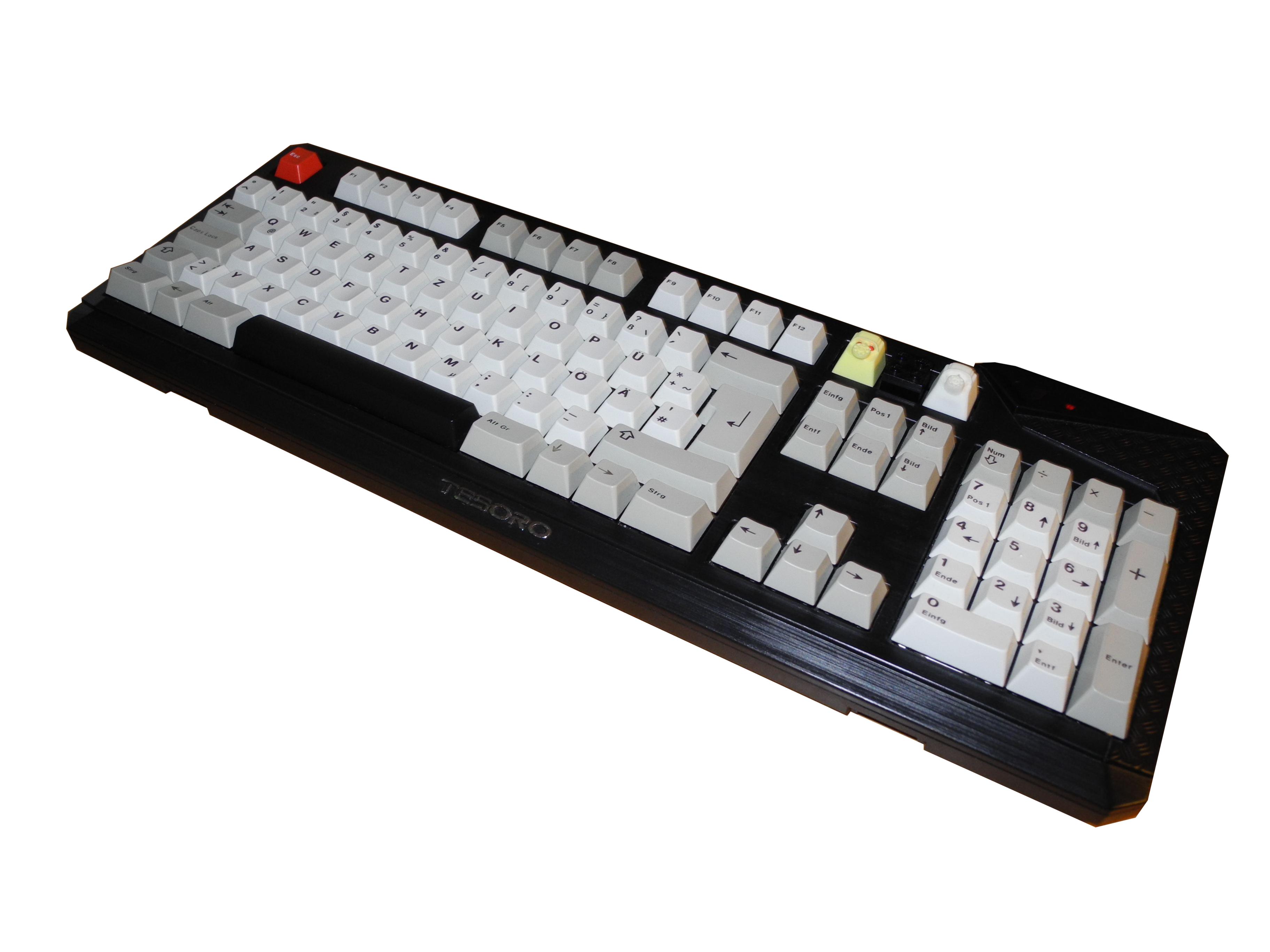 Die Tesoro hat keine Standardkappen auf der untersten Reihe, wenn du also irgendwann mal die Tastenkappen wechseln willst könnte das zum Problem werden. Unmöglich ist es aber nicht. Hab bei meiner auch alle bis auf die Leertaste ausgetauscht bekommen: