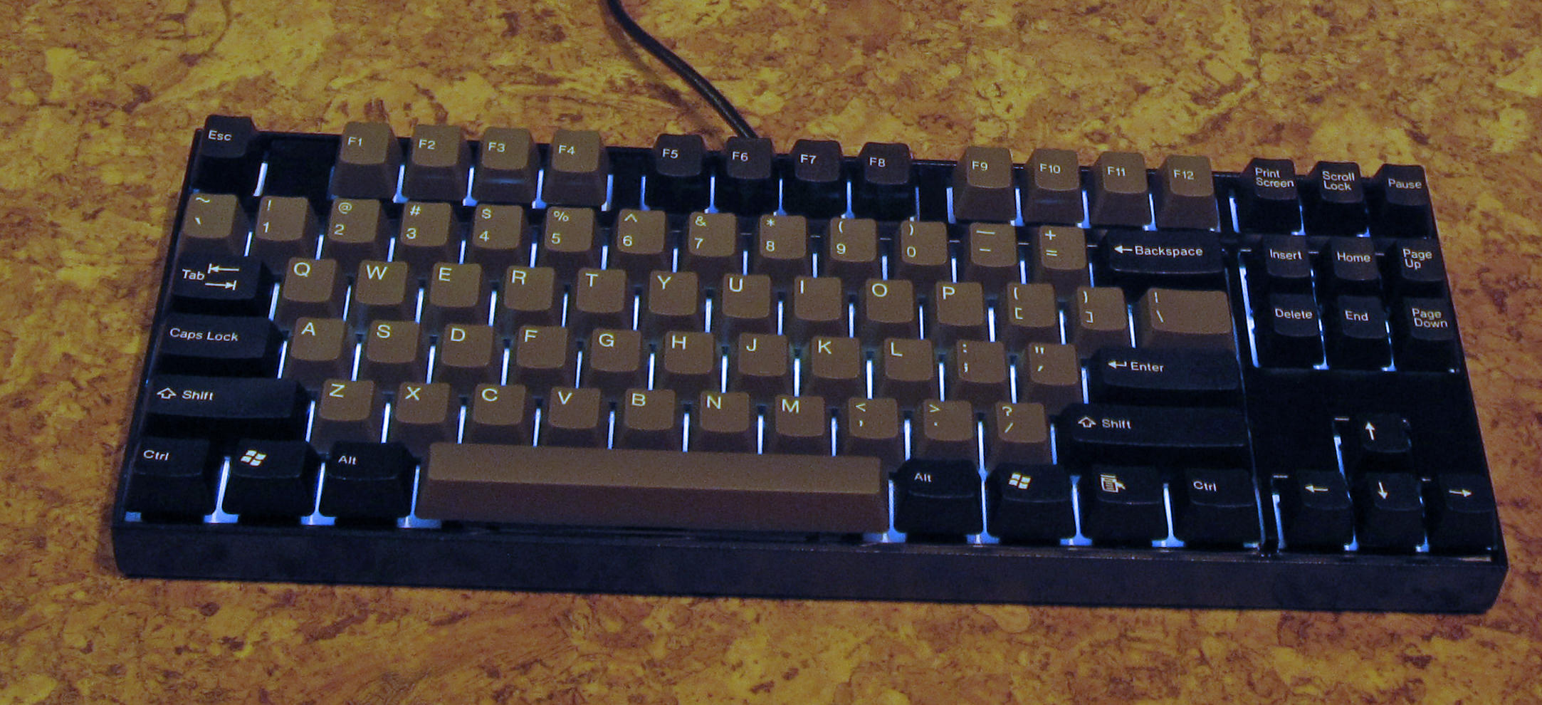 PBT-Tastenkappen als DoubleShot (ja klar...) oder Dyesub oder gar keine Tastenkappen.