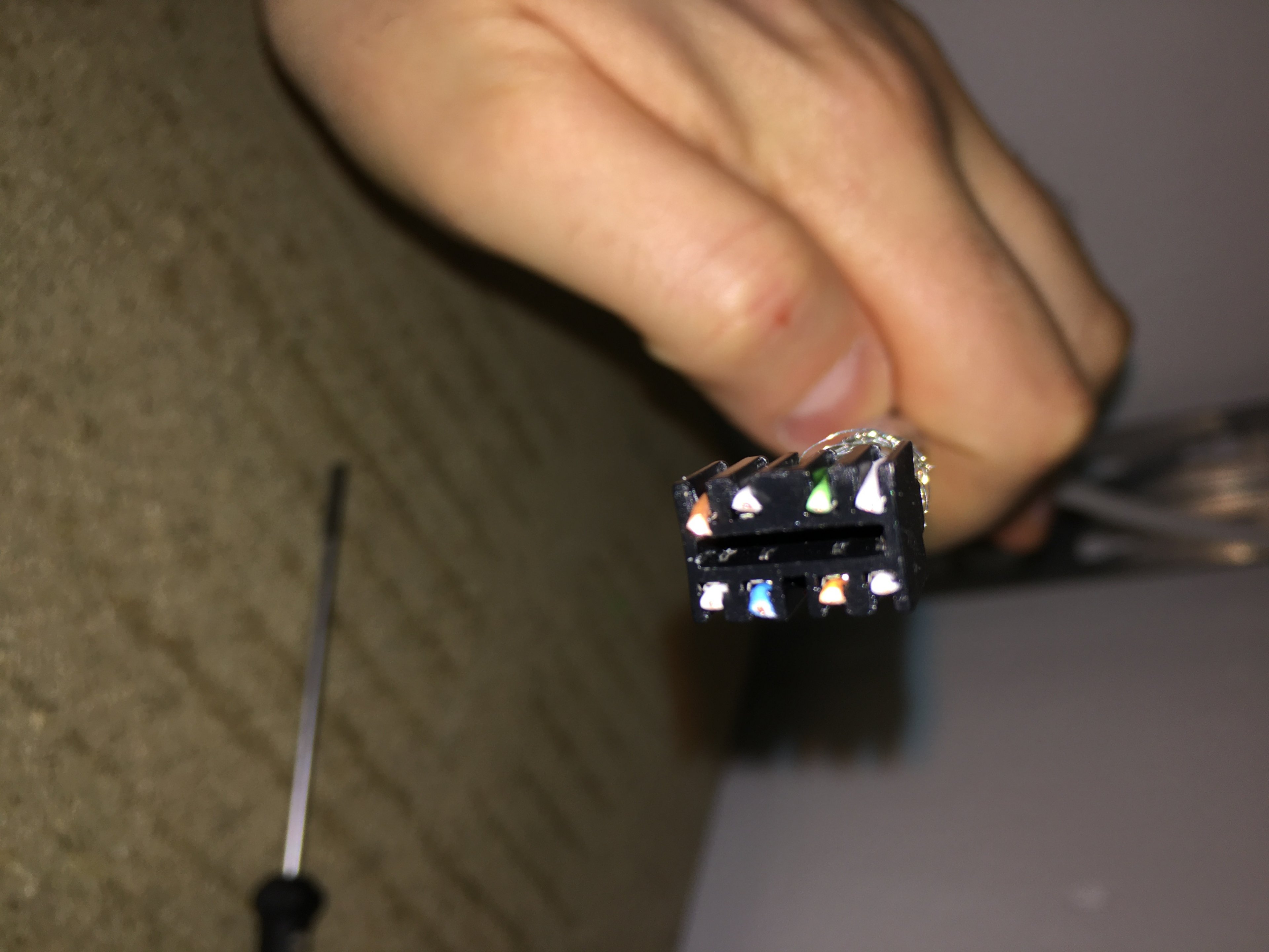 Habe ich nach einem kaputten Stecker auch gemerkt, dass Crimp-Zange nicht gleich Crimp-Zange ist. grummelt Ok, ich gebs zu, ich habe es erst nach ZWEI kaputten Steckern gemerkt. Der LAN-Kabeltester hat angezeigt, dass ich 3/8 Adern richtig angeschlossen habe.