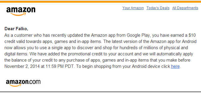 ich habe vor Wochen eine Email von Amazon bekommen: