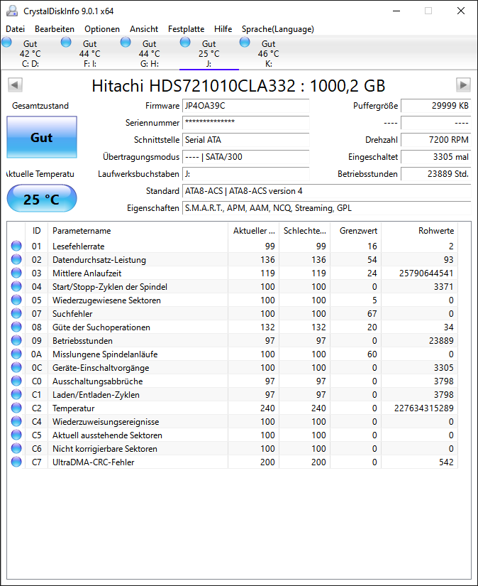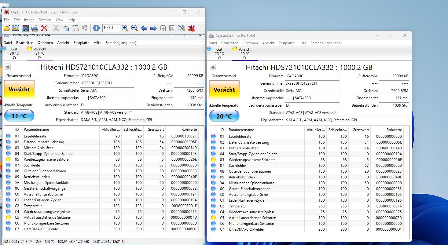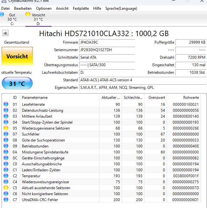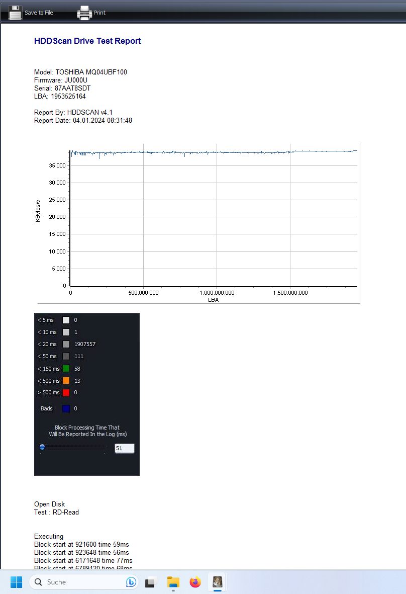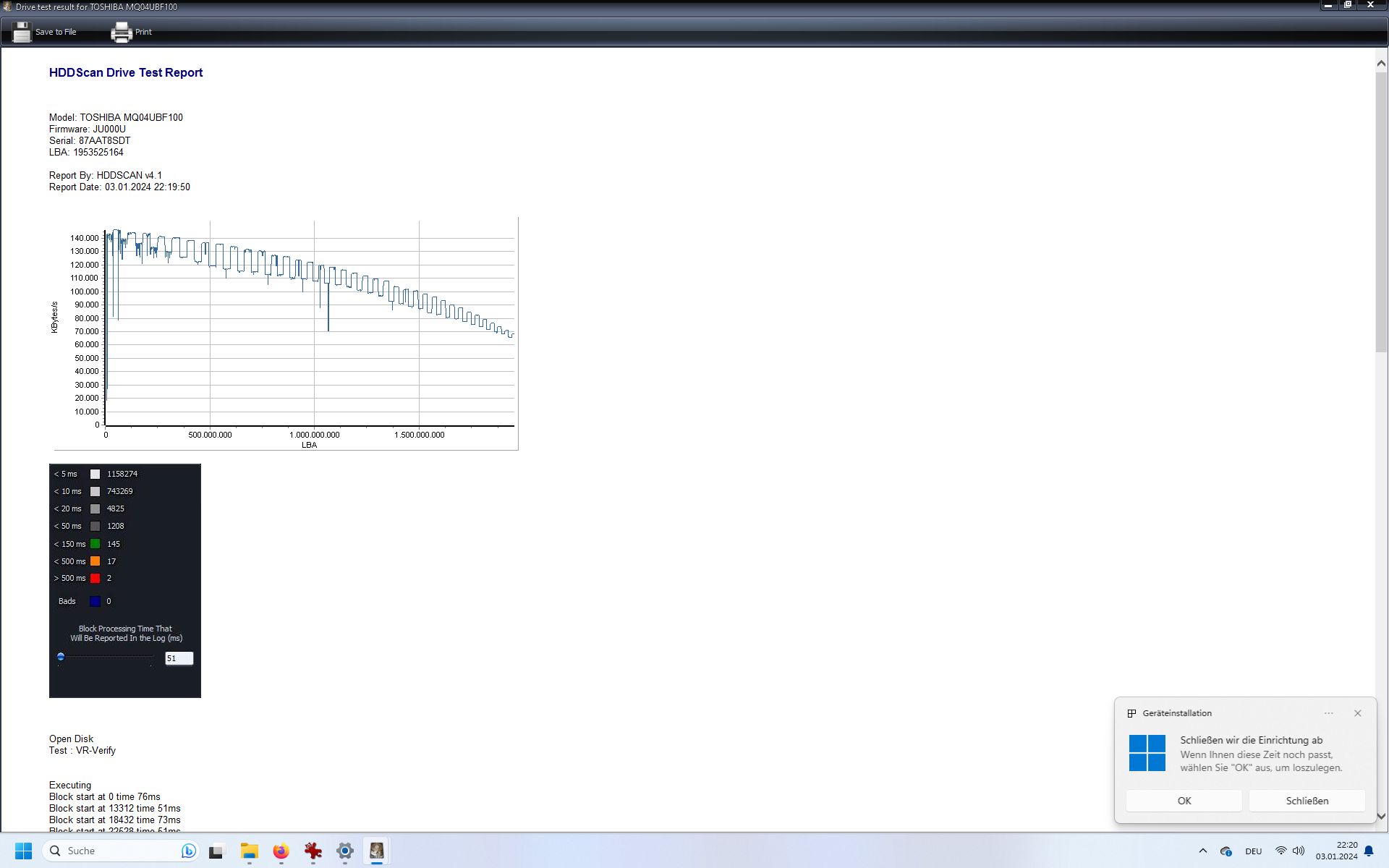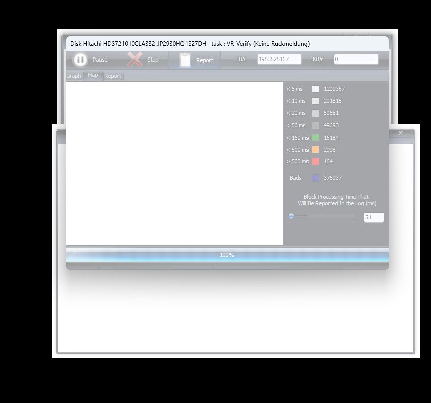 ich überprüfe gerade meine alten Datengräber: Habe eine Hitachi HDD, die mindestens 10 Jahre alt ist, intern eingebaut, um sie zu checken. HDDScan (Verify) lief über Nacht, als ich die Ergebnisse abspeichern wollte, hat sich das Programm aufgehängt, hm, daher der komische Screenshot. Die SMART-Werte habe ich im Anschluss ausgelesen. Sollte ich die HDD einfach entsorgen bei diesen Werten und dem Alter?