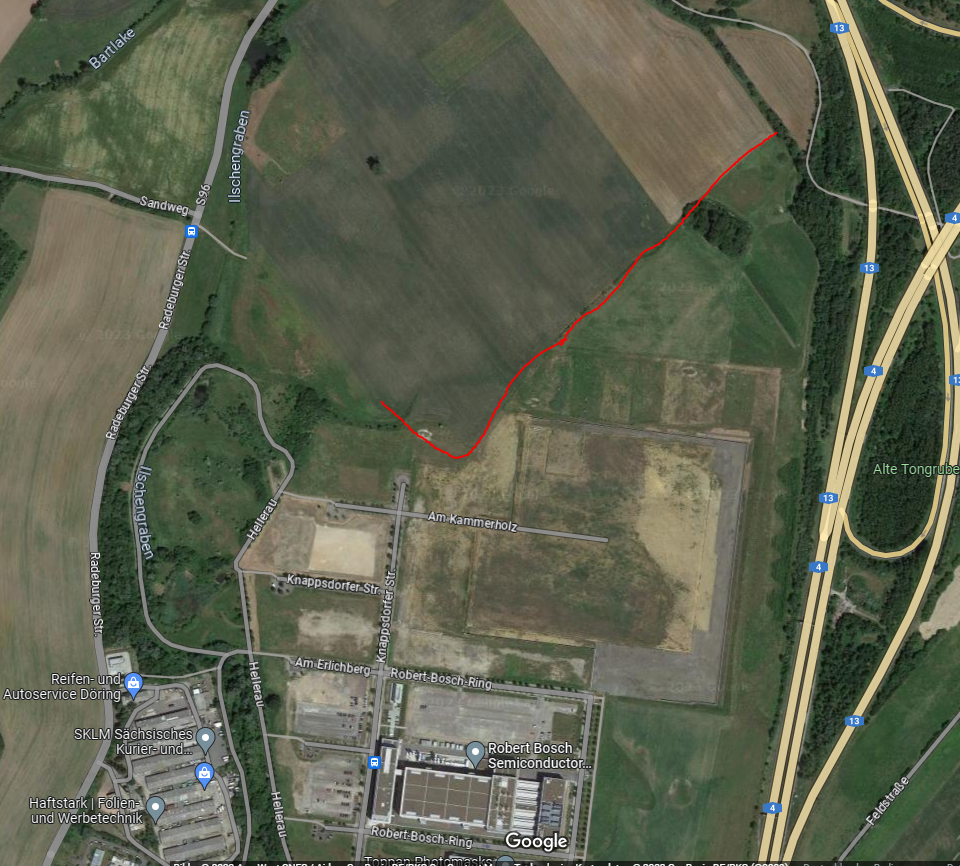 so wie es scheint ist der bachlauf die westliche grenze https://www.google.de/maps/dir/51.1...6!2m2!1d13.7128672!2d51.1349029!3e0?entry=ttu und die str. "zum oberen waldteich" die nördliche grenze zwischen dresden & meißen. wobei das gebiet große genug erscheint.Skarrsensson schrieb:Interessant wo man es bauen wird wollen.
