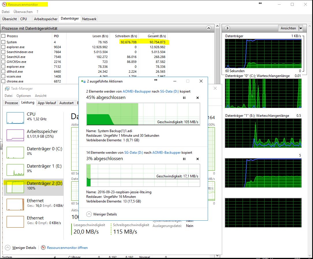 Heyho, plötzlich reagiert die HDD hier sehr sehr merkwürdig, Sie wird durch kein Prozess in Windows 10 belastet und überträgt auch aktuell keine Daten. : O