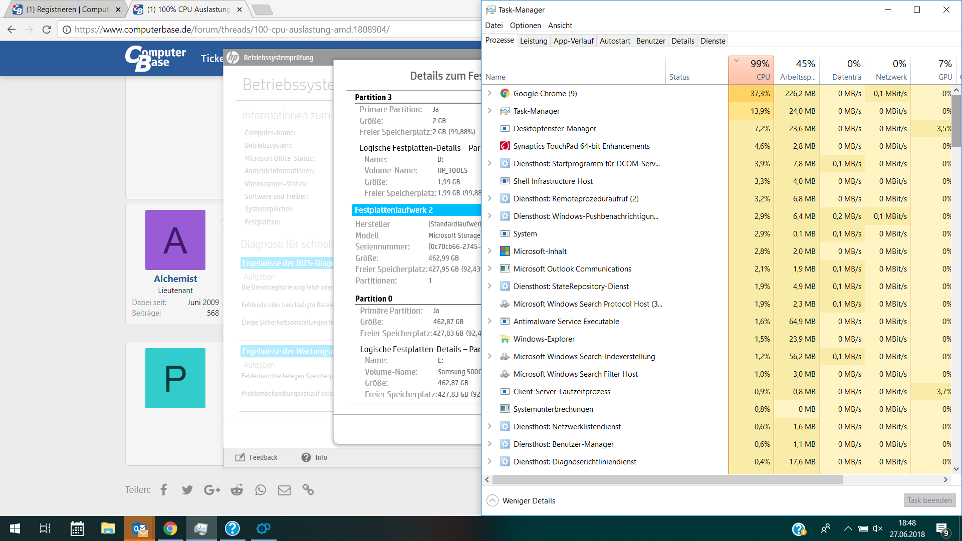 Nun ist es so, dass selbst Chrome die CPU zu 100% auslastet. Selbst während ich hier gerade schreibe, kommen die Buchstaben verzögert.