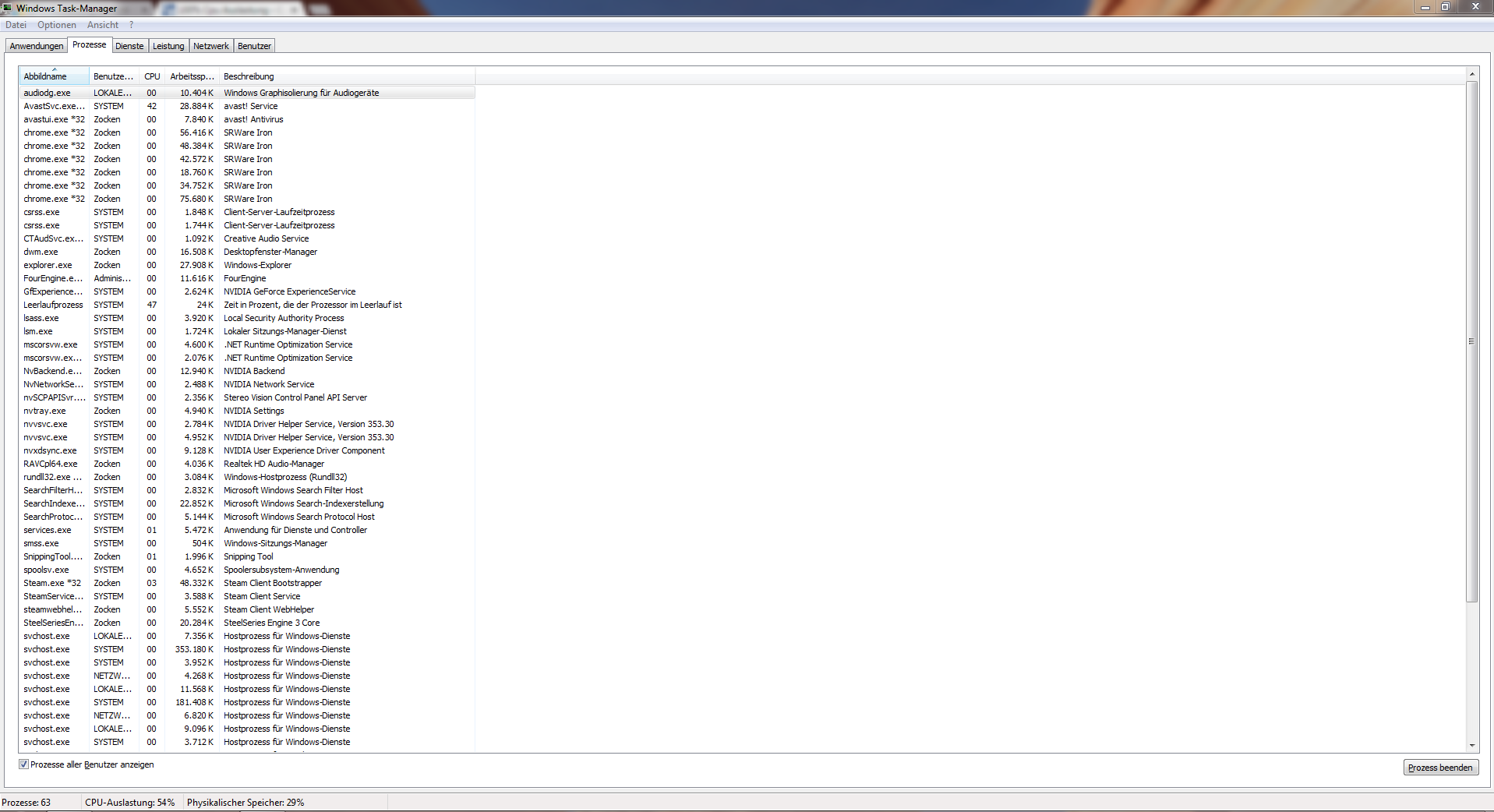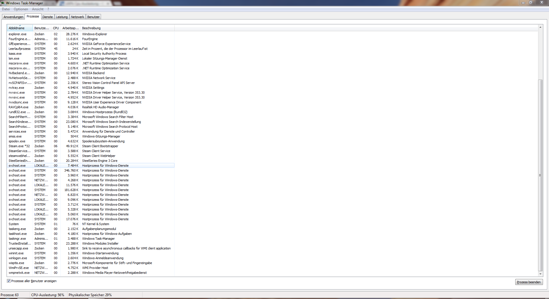 habe gestern ne neue SSD eingebaut und darauf Win7 installiert. Seitdem habe ich 100% CPU Auslastung konstant. Ohne jegliche Programme offen zu haben oder anderes..