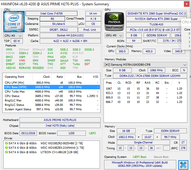 Bin auf eine ASUS H270+ (Mainboard) umgestiegen und hab meine CPU von vorher übernommen (i7-6700)