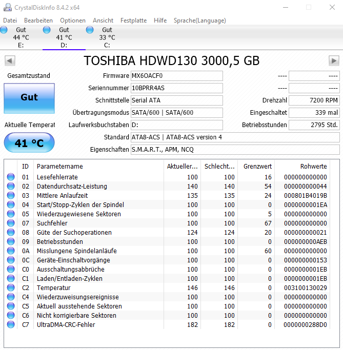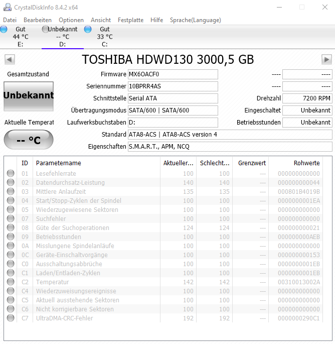 6. Mit Crystaldisc den Zustand checken: Zustand war Gut