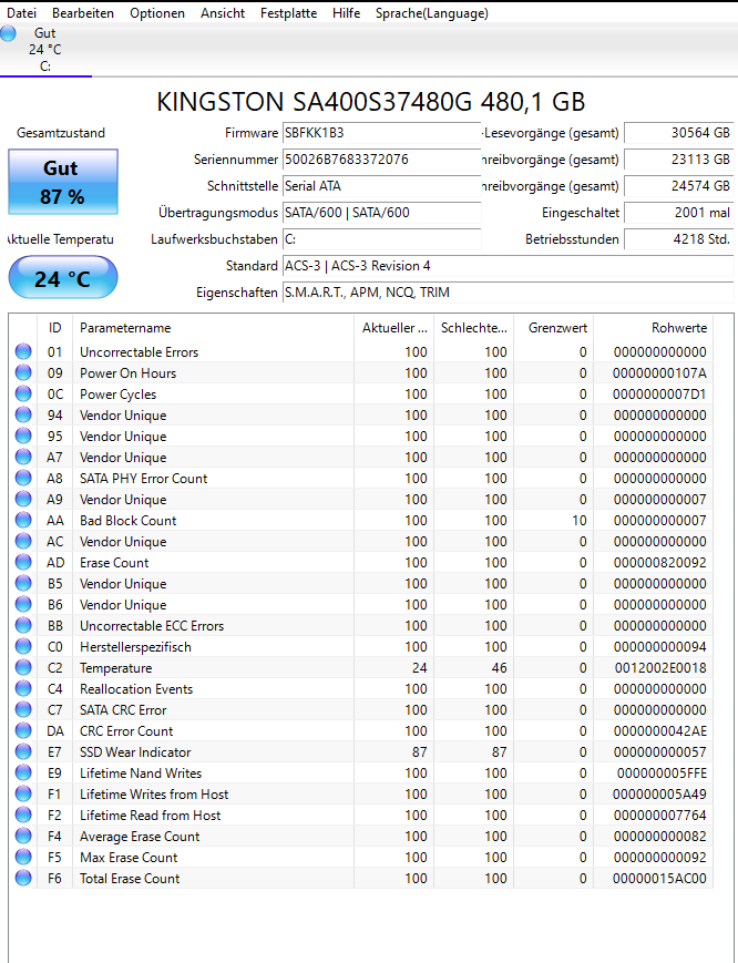 Und ja anderes Sata Port hatte ich ausprobiert