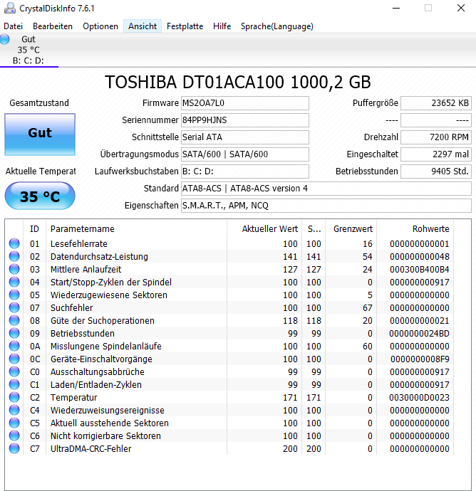 1000 GB Festplatte (Toshiba DT01ACA100)