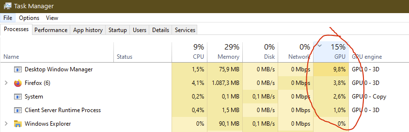 Im Taskmanager die Anwendungen ziehen maximal 5% GPU ( auf dem Desktop z.b. )