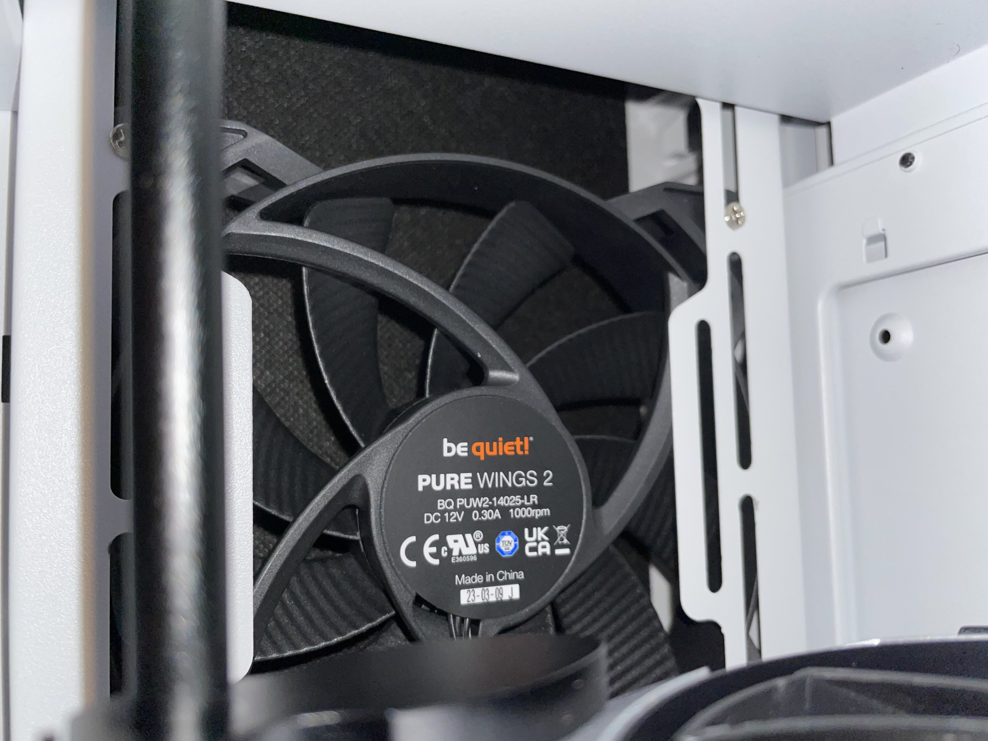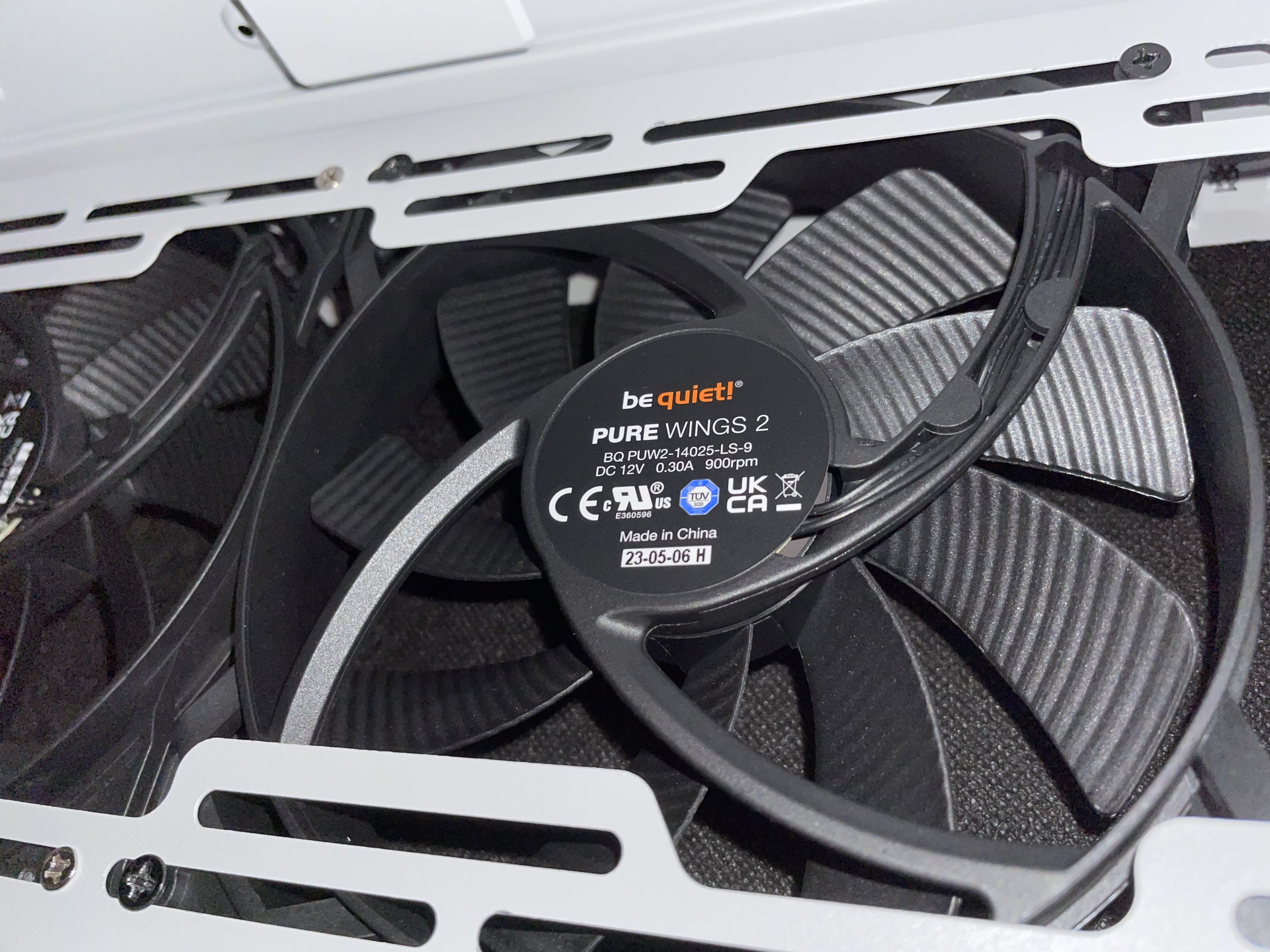 Es waren bereits zwei Pure Wings 2 von be quiet! in meinem Pure Base 500 vorinstalliert. Also bin ich los zum hiesigen PC-Laden und habe mir noch einen dritten Pure Wings 2 besorgt. Für diesen war noch Platz in der Front des Gehäuses.