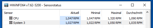 PS: Bei der Anzeige im BIOS und in HWInfo in Windows wurde ich stutzig, und habe mir noch mal die Lüfter genau angeschaut: erst dann fiel mir auf, dass die beiden vorinstallierten 100 rpm weniger leisten. Ich dachte eigentlich, dass die Serien alle gleich sein sollten. Hier wurde ich eines Besseren belehrt.