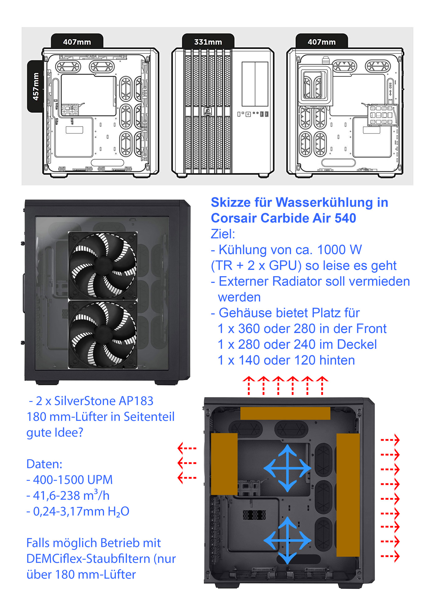 ich möchte nach 10+ Jahren mit externen Radiatoren ein System mit ausschließlich internen planen - das Gehäuse steht fest (Corsair Carbide Air 540).