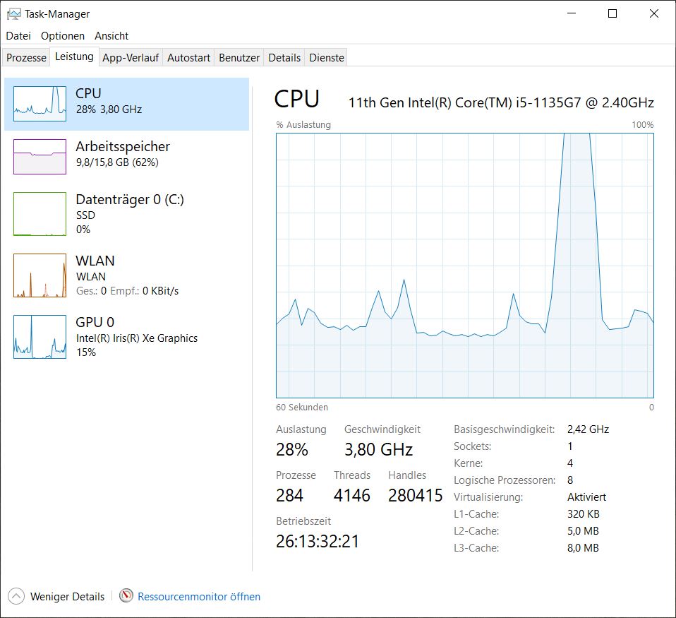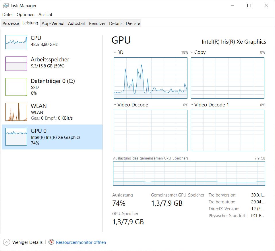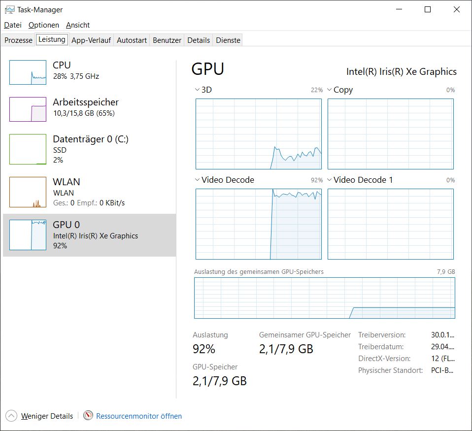 Laptop: ThinkBook 15 G2 ITL (i5 1135+ Iris Xe), kein externer Monitor. Videos sind auf der internen SSD gespeichert.