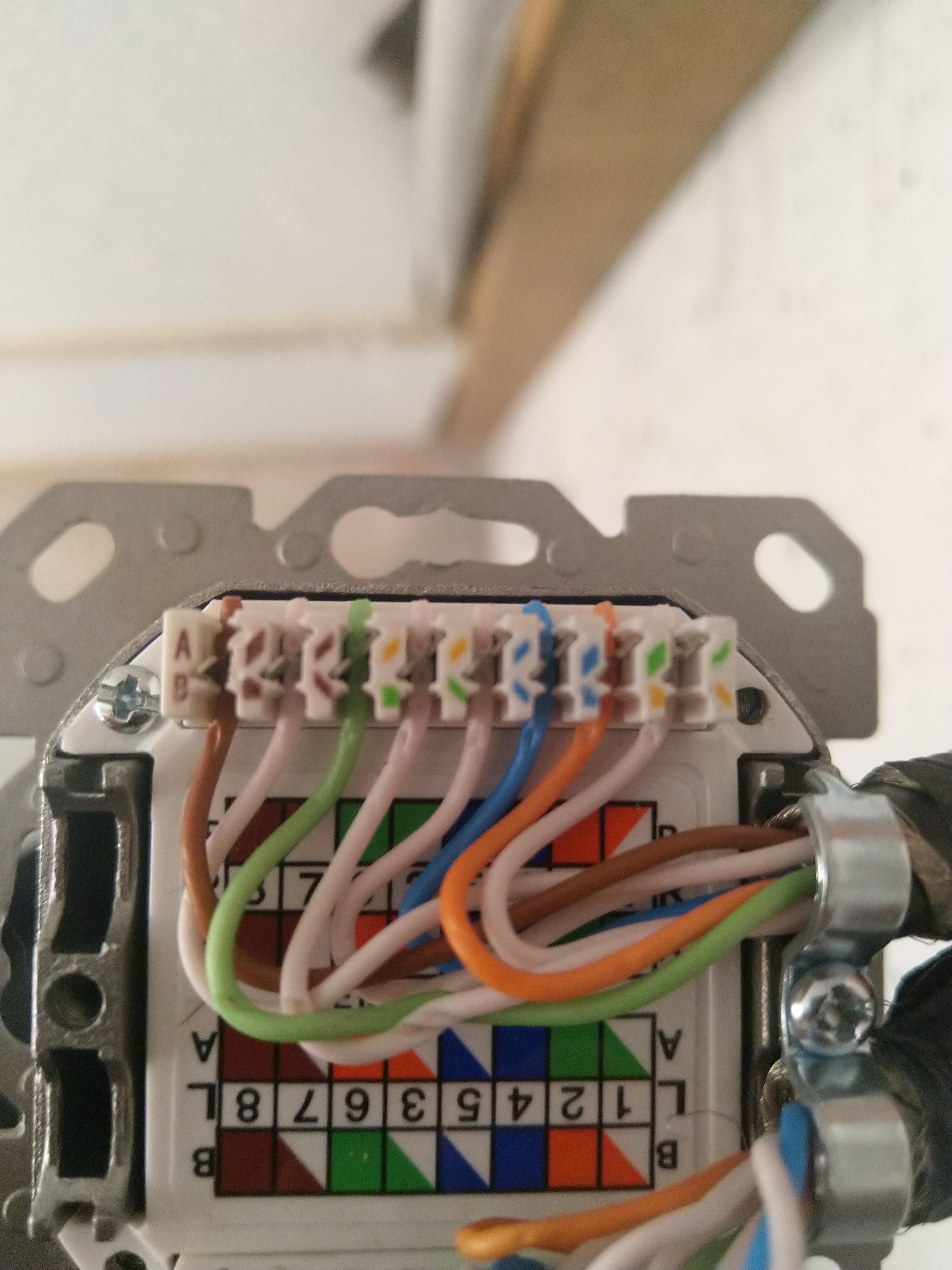Es handelt sich dabei um cat7 kabel (link) und als Dosen wurden cat6a Dosen verwendet (link).