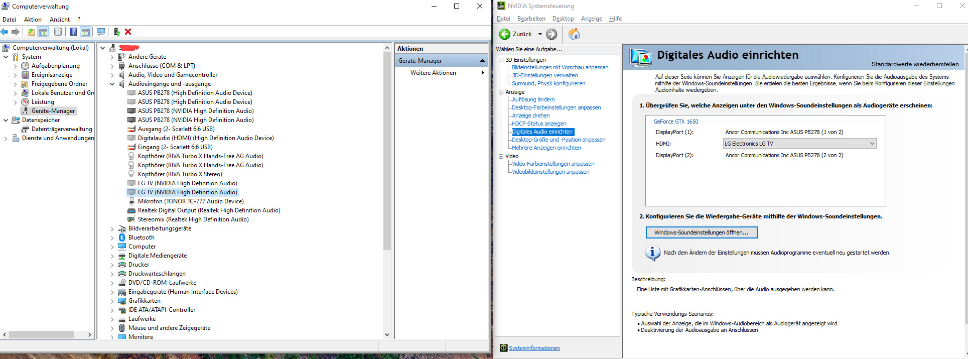 über die nvdia systemsteuerung unter digitales audio einreichten sehe ich den TV. ein audio ausshalten und wieder ein bringt keine besserung. ein neustart auch nicht. kabel ab und wieder dran bringt auch nix.