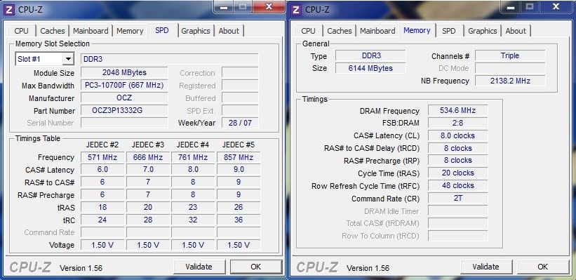 Arbeitsspeicher: 3 x OCZ XTC Platinum DDR3 SDRAM 1333 (667MHz) 2 GB