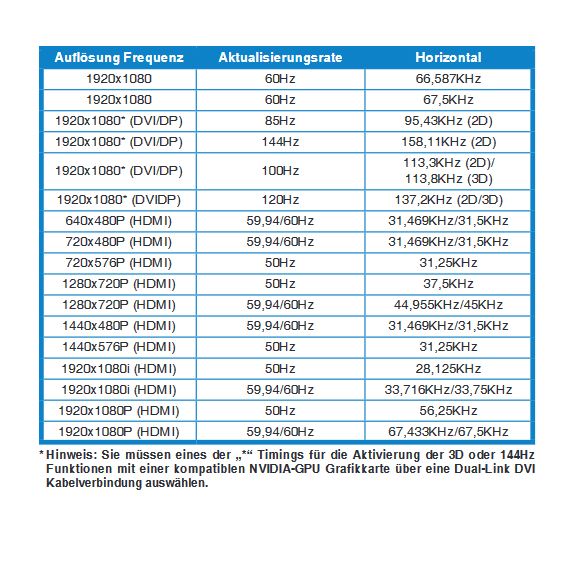 Der asus wurde mit einem DVI D Kabel geliefert, Dieses bietet ja zwar die 144hz aber nur normales 1920x1080 also 1080i und nicht 1080p.