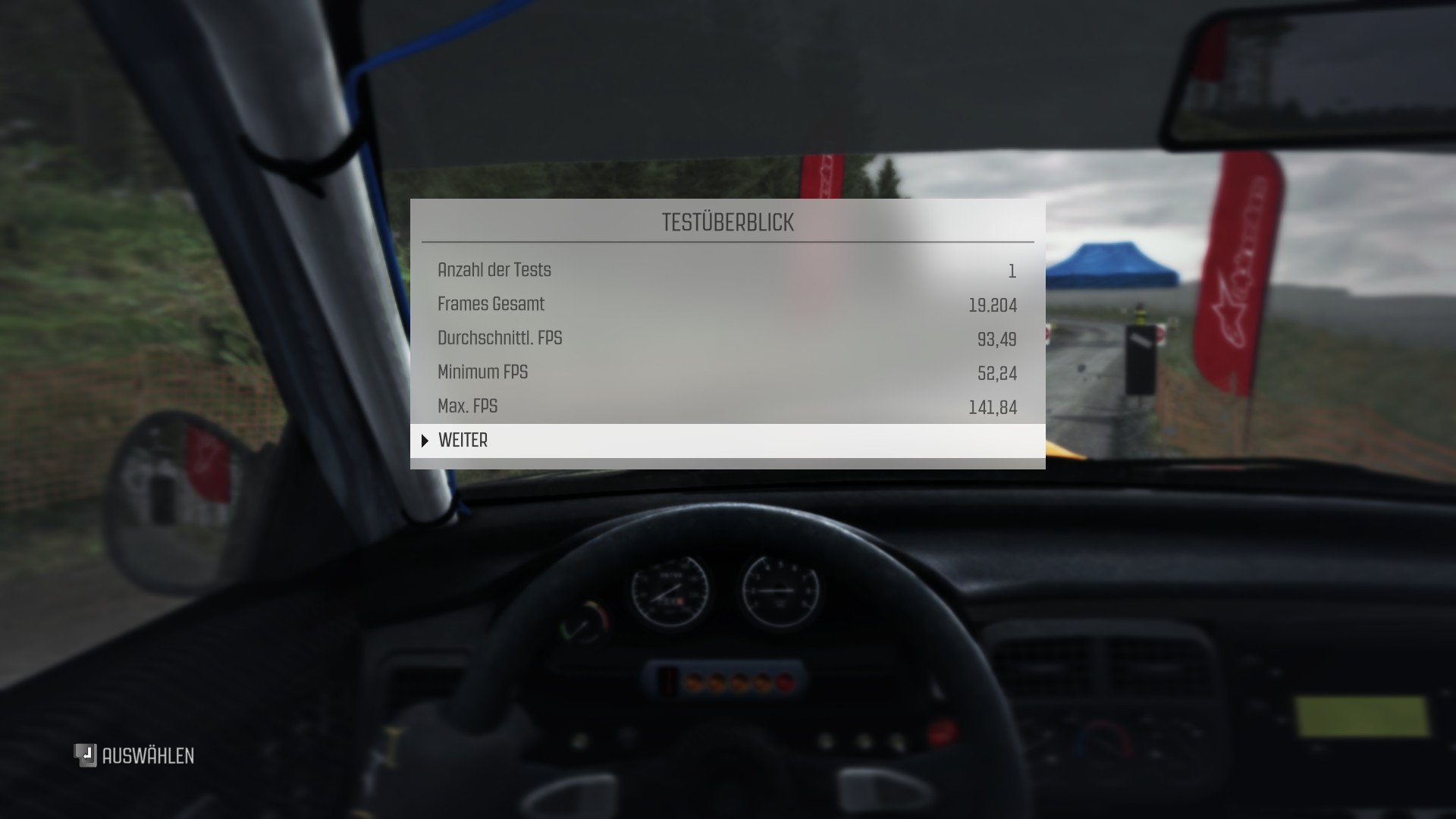 Der integrierte Benchmark ist etwas komisch.....nicht bei jeder Messung sind die Kameraperspektiven gleich...diese scheinen erst gleich zu bleiben, im späteren Verlauf weichen sie aber gerne mal ab....und es gibt Ruckler, die beim selber fahren nicht auftreten.....daher habe ich zum genaueren untersuchen die ersten 60s mit Fraps mitgeschnitten und bin dann die gleiche Strecke(Pant Mawr), mit dem gleichen Auto(Subaru 1995) selbst gefahren. Auch das selbst Fahren habe ich über 3 Messungen gemittelt...ich habe da ein kleines C++ Programm für...das spuckt mir alles mögliche an Daten aus...