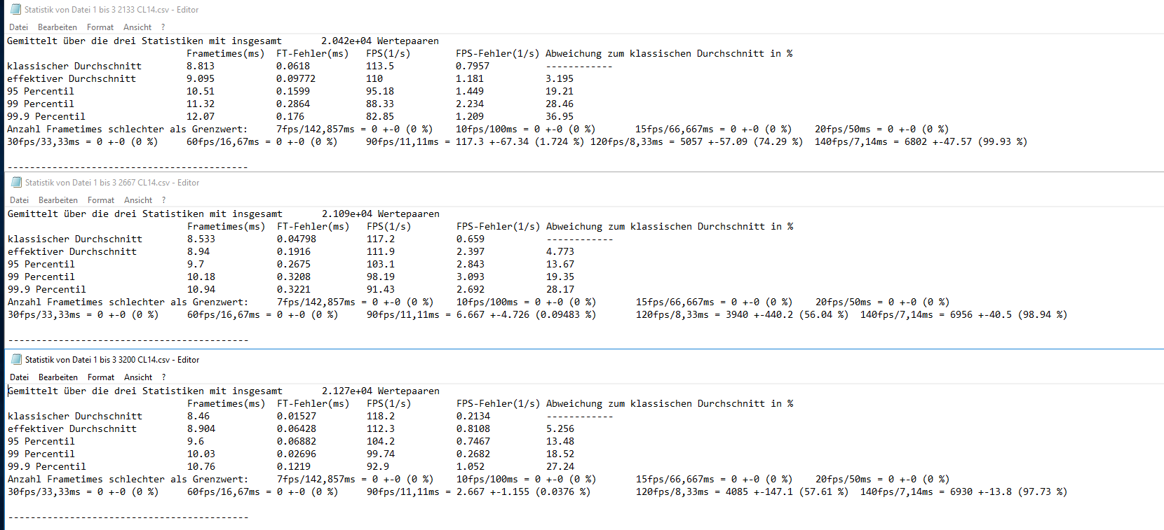 hier ist bei einer Messung was schief gegangen....da waren die Minimum FPS nur bei 57,88.....bei den anderen beiden Messungen liegt der Wert bei erwartbaren 105,74 und 105,53)