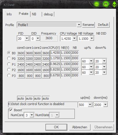 Soll ich auf "P2 locken"? Ich habe ja P1-P4 UND zusätzlich B0 als Turbo State in K10Stat. Ich möchte das K10Stat alleine in den Turbo schaltet. Muss ich dazu nicht bei "Boost" ein Häkchen machen? K10Stat managt für mich ja schon das C&Q und es soll halt auch den Turbo mit managen.