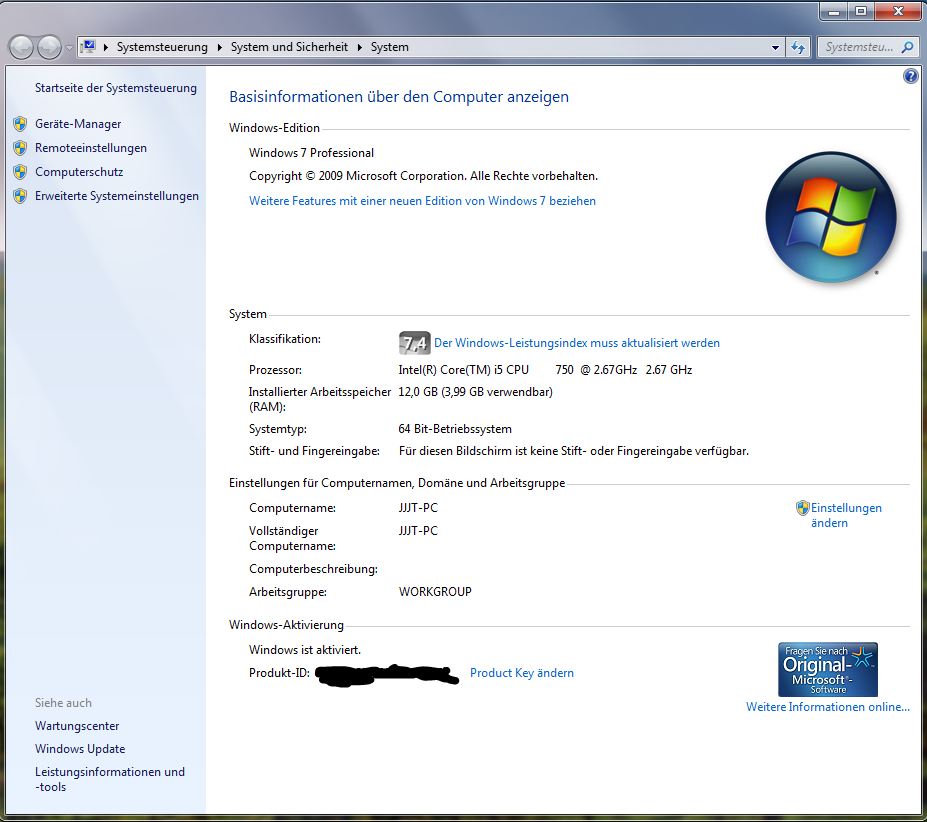 Der Rechner läuft ohne Probleme, aber Windows selbst will nur 3,99GB nutzen, trotz 64 Bit.