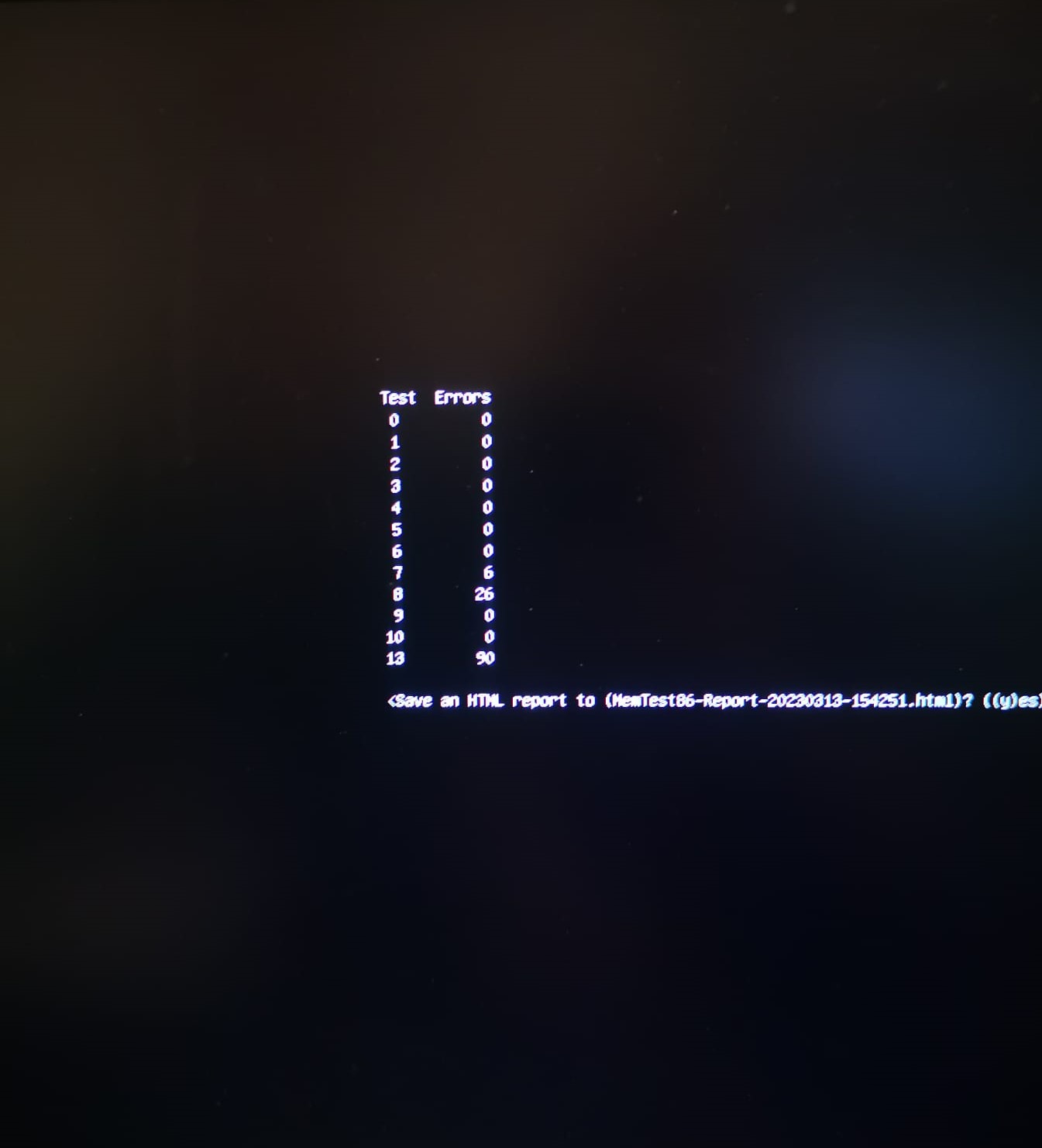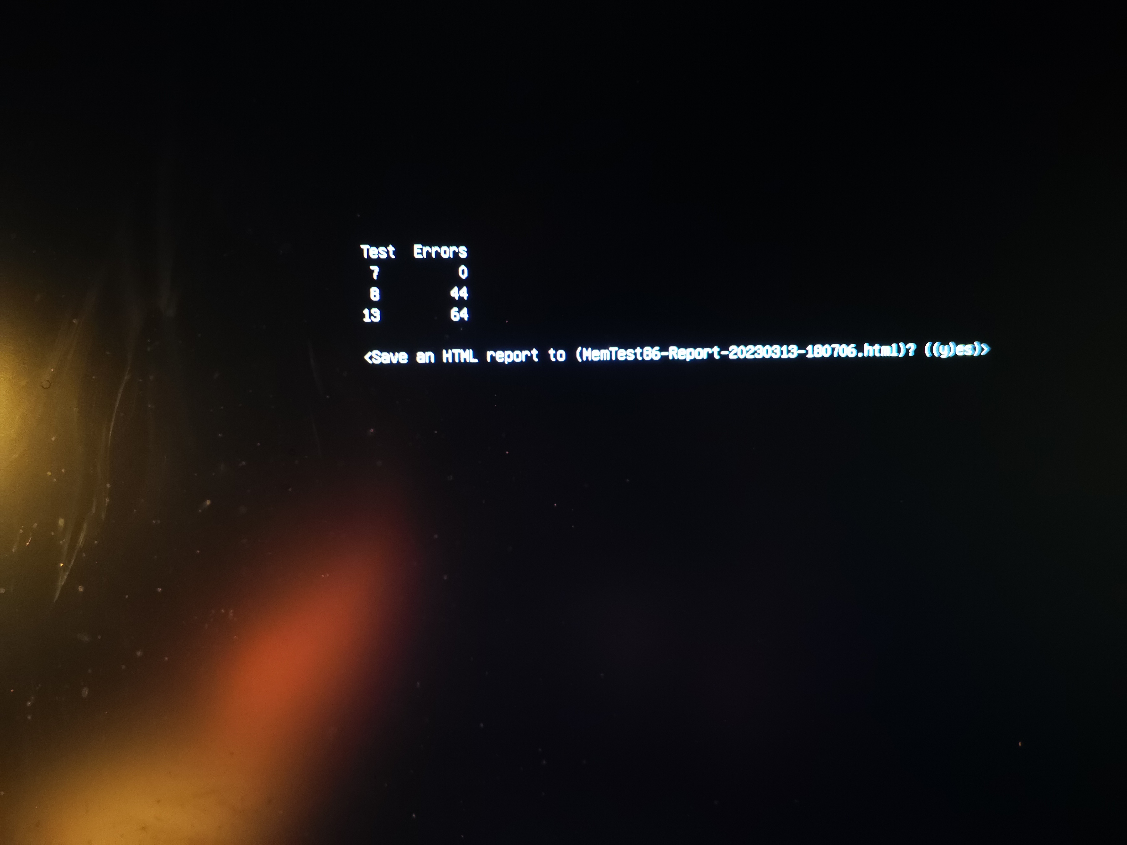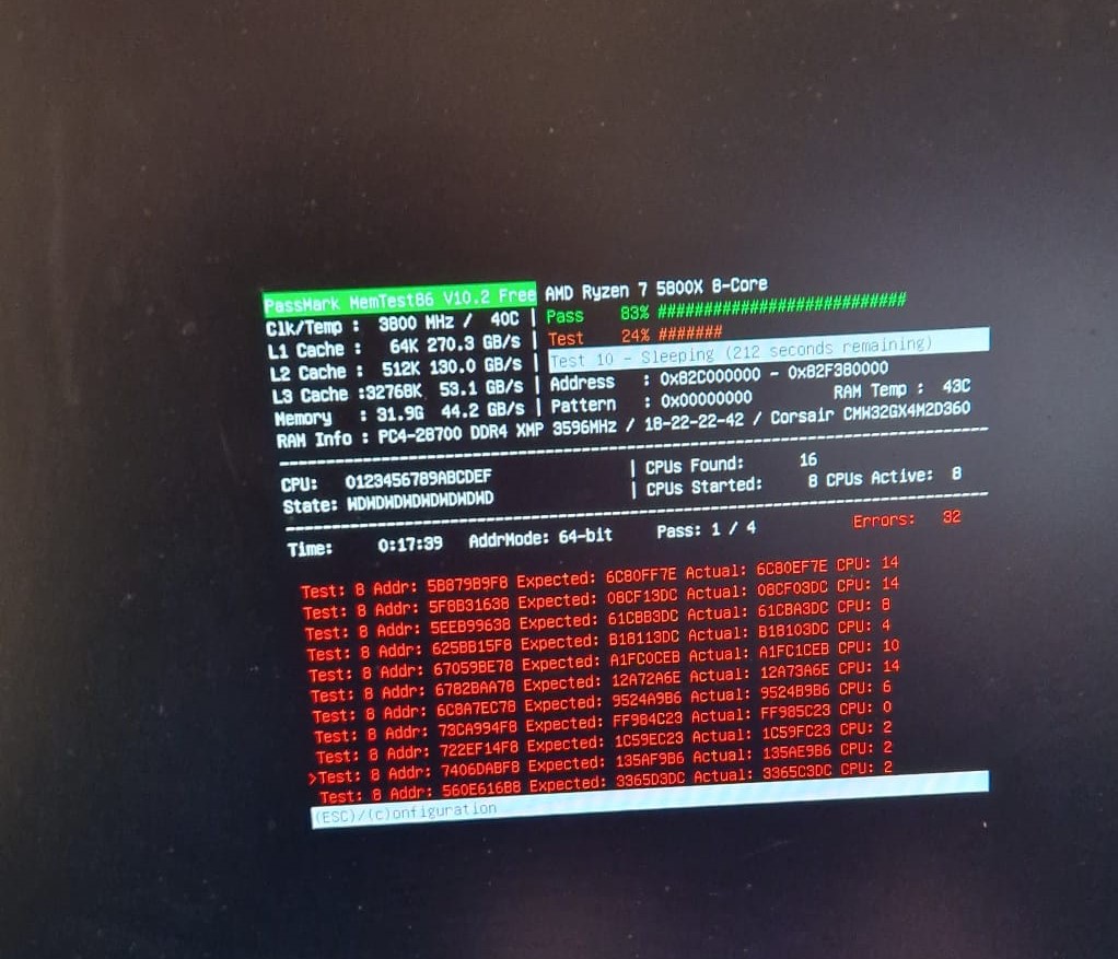 Ich habe den Memtest68 komplett durch laufen lassen und ca. 120 Errors erhalten. Bilder sind im Anhang leider nur als Handyfoto da Memtest keine Datei mit Infos dazu gepackt hat. Bilder sind leider nicht sehr aussagekräftig aber vieleicht kann man ja trotzdem was damit anfangen.