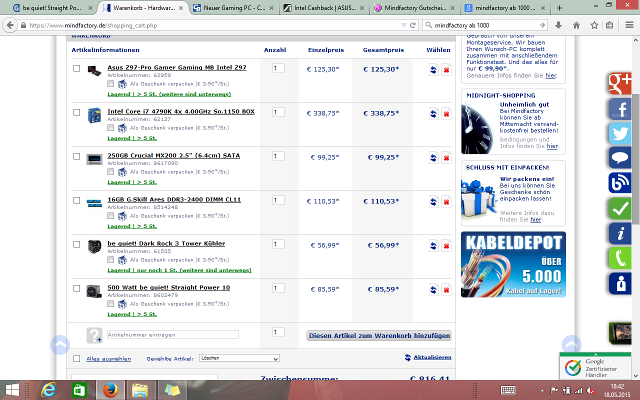 Bei den GPUs bitte die ASUS Cashback Aktion beachten.