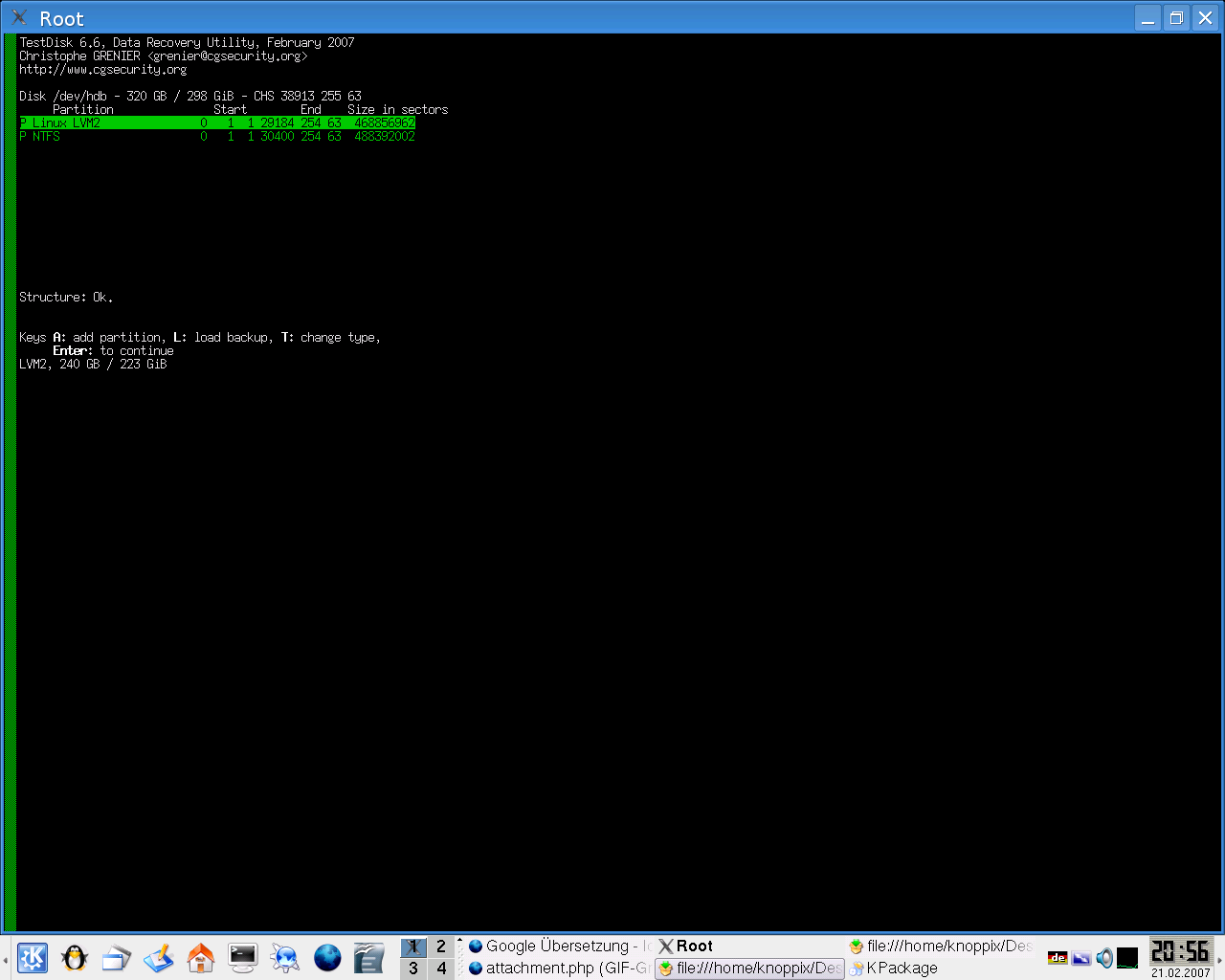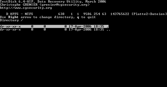 Markiere mal die betroffene Partition und drücke p auf der Tastatur ob deine Daten angezeigt werden oder eine Fehlermeldung.