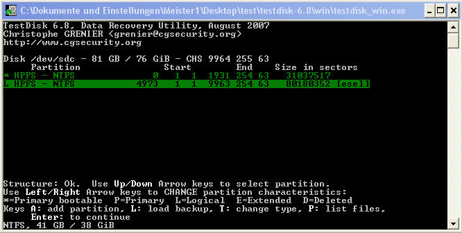 Dieses sollte dann als Datei auf einer intakten Partition unter anderen Namen (wenn möglich) gespeichert werden.