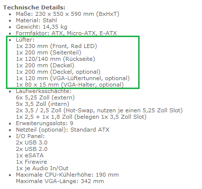 Ich möchte mir demnächst ein HAF X zulegen (gutes P/L-Verhältniss, gross, gut für Luftkühlung) allerdings möchte ich noch ein paar zusätzliche Lüfter installieren.