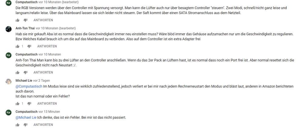Jedoch vergisst der Controller nach jedem Neustart die Speedeinstellung (leise) und fährt mit hoher Drehzahl, was zu laut ist - soll das wirklich so sein oder habe ich was falsch konfiguriert?